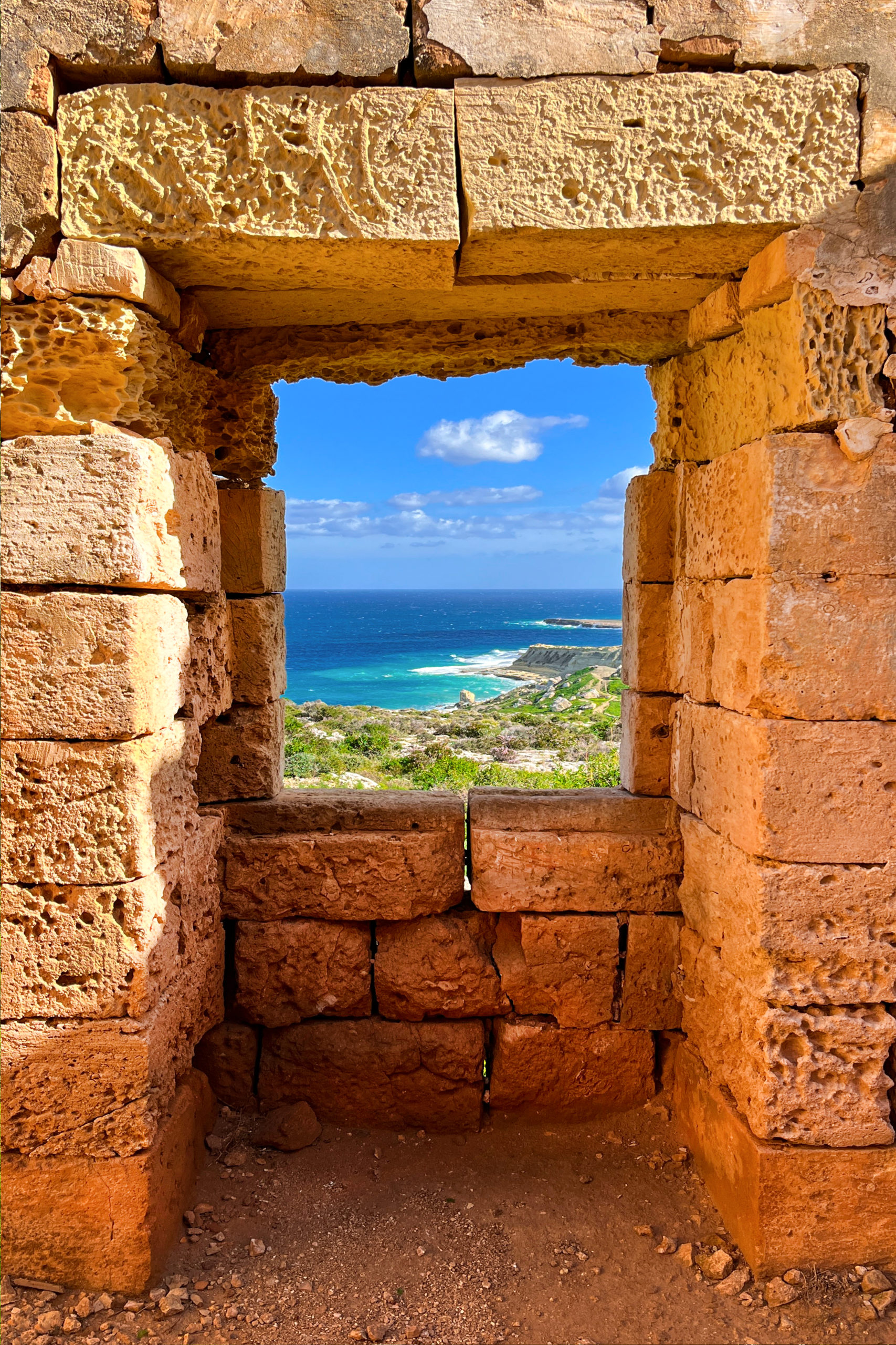 Dieser tolle Ausblick gehört zu einer verlassenen Ruine an der Küste Maltas. Eine einmalige schroffe Natur direkt am Mittelmeer. Der Wind war so stark, so dass wir nicht mal die Drohne steigen lassen konnten.