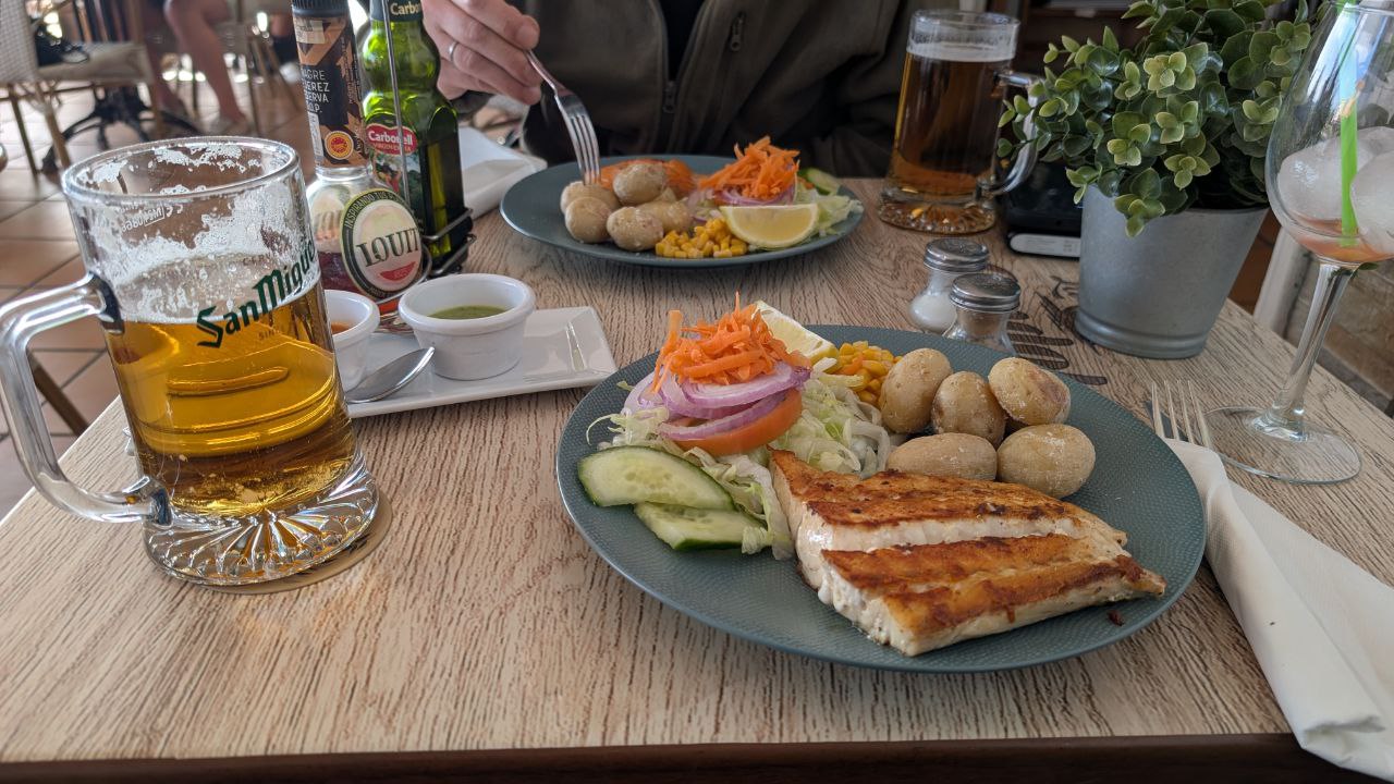 Unten haben wir den Kopf wieder klar bekommen und sind weiter Richtung Playa Blanca. Dort haben wir uns nicht nur frischen Fisch gegönnt, sondern auch das Problem gelöst. Neue Hose kaufen, weitermachen. Das klingt banal, aber genau diese Kleinigkeiten entscheiden, ob ein Tag kippt oder ob du ihn durchziehst.