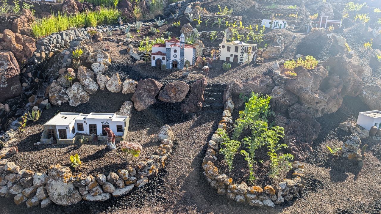 Dann kamen mehrere kleine Orte, typische Häuser, zwischendurch immer wieder Bauten, die schon halb aus dem Alltag gefallen sind. Und genau dort, wo du eigentlich nur durch willst, passiert Lanzarote oft am stärksten. Ein kleines Modelldorf hat uns kurz aus dem Marschmodus geholt. Das Model village of salt extraction from mountains in Yaiza ist winzig, liebevoll, fast unscheinbar, aber genau deshalb bleibt es hängen.