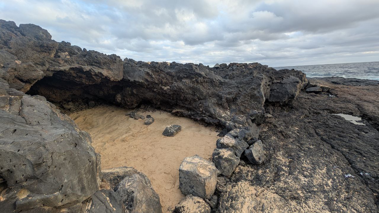 Statt uns in eine riskante Route zu pressen, haben wir die Umgebung der Cueva de la Paloma erkundet. Diese riesigen Höhlenräume wirken wie ein geologischer Dom, roh, dunkel, weit. Lava, die einmal floss, hat hier Formen hinterlassen, die man nicht plant, die man nur findet. Genau dafür laufen wir. Nicht für das Häkchen auf der Karte, sondern für diesen Moment, wenn man merkt, dass die Insel größer ist als jeder Zeitplan.